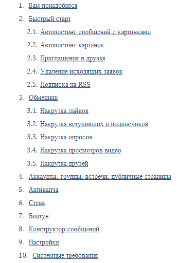 Как я уже упоминал, ответы на все вопросы может дать инструкция к Ботоводу, составленная разработчиками. Она ждет вас на официальном сайте Viking Studio, ознакомиться с нею можно сразу после регистрации. Эта инструкция более чем подробна: в ней каждое возможное действие описано пошагово и от А до Я. В качестве небольшого доказательства представляю вашему вниманию скриншот ее плана: